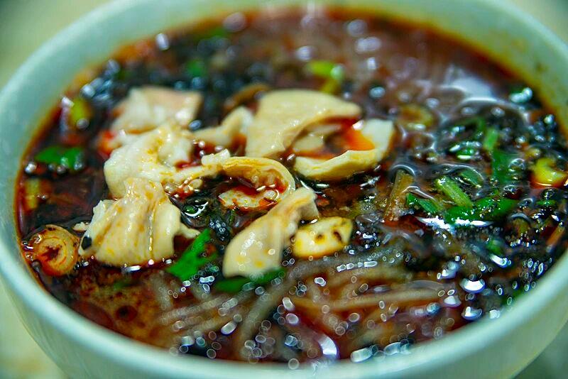 成都的肥肠粉,有很多讲究:红薯粉条要煮得软糯却不烂,挑起时晶莹剔透,裹着红油还能看见粉芯;肥肠得提前用香料卤透,咬下去滑爽耐嚼,卤香混着油脂香在嘴里散开;汤底是灵魂,用牛油、辣椒、花椒熬得红亮,喝一口,麻辣鲜香直窜味蕾。