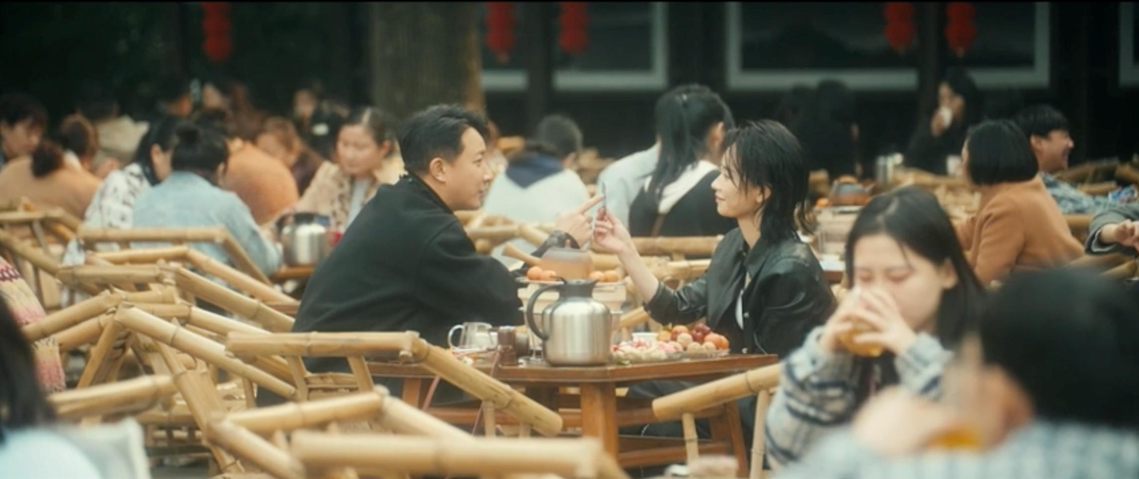 电影中,孟云和柳柳一起去茶铺喝茶,二人在竹椅对坐,面前的泥炉上煮着茶壶,两人边喝茶边聊天,悠闲惬意。这个镜头取景的茶铺,正是成都无数茶铺的缩影。